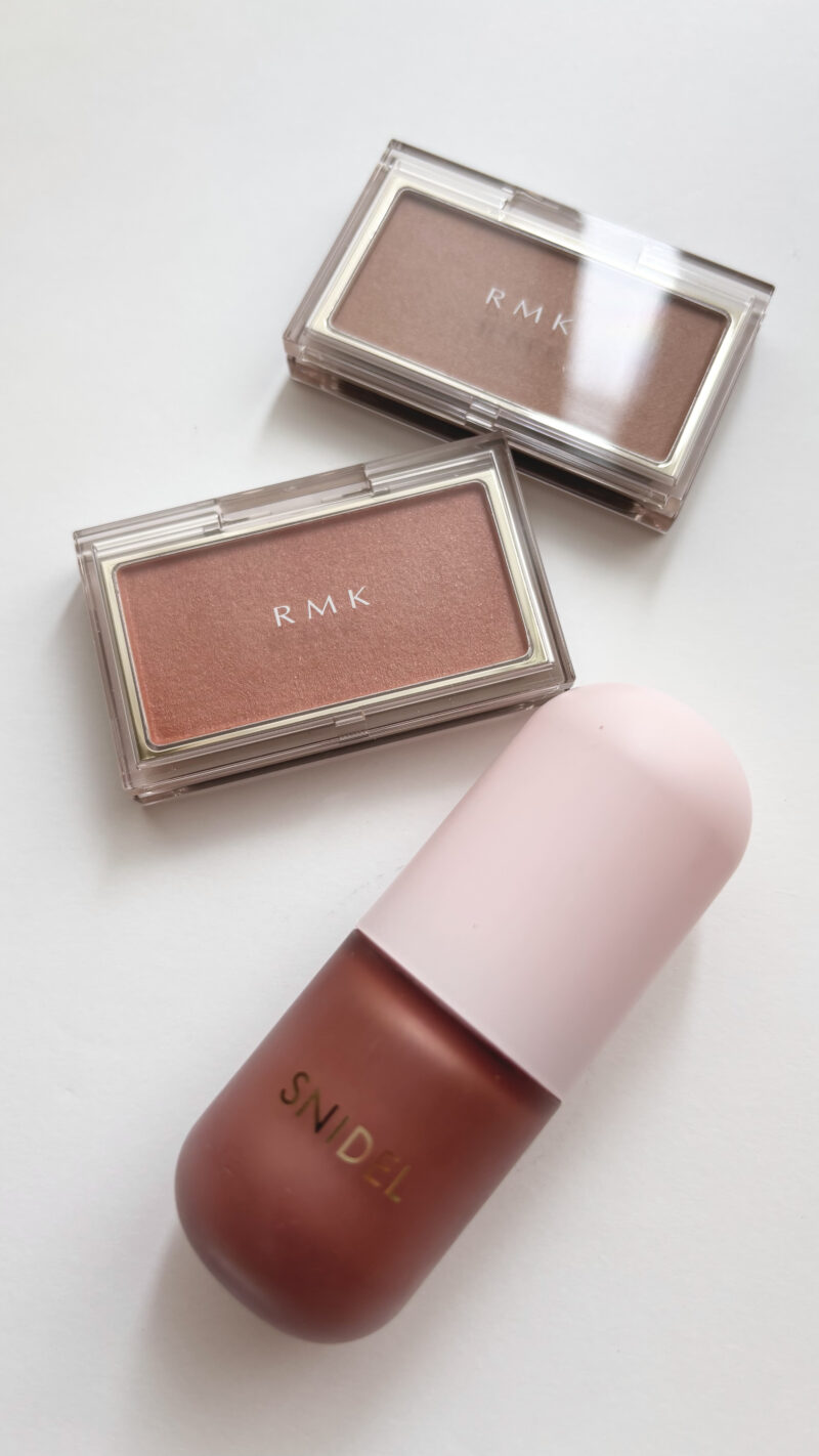 「黄味がかった肌のイエベさんには、ベージュやオレンジ系カラーが似合います。さらに分類すると、スプリングはペール感のあるチークでふんわり仕上げ、オータムは落ち着いたマット系のチークで引き締めると◎」