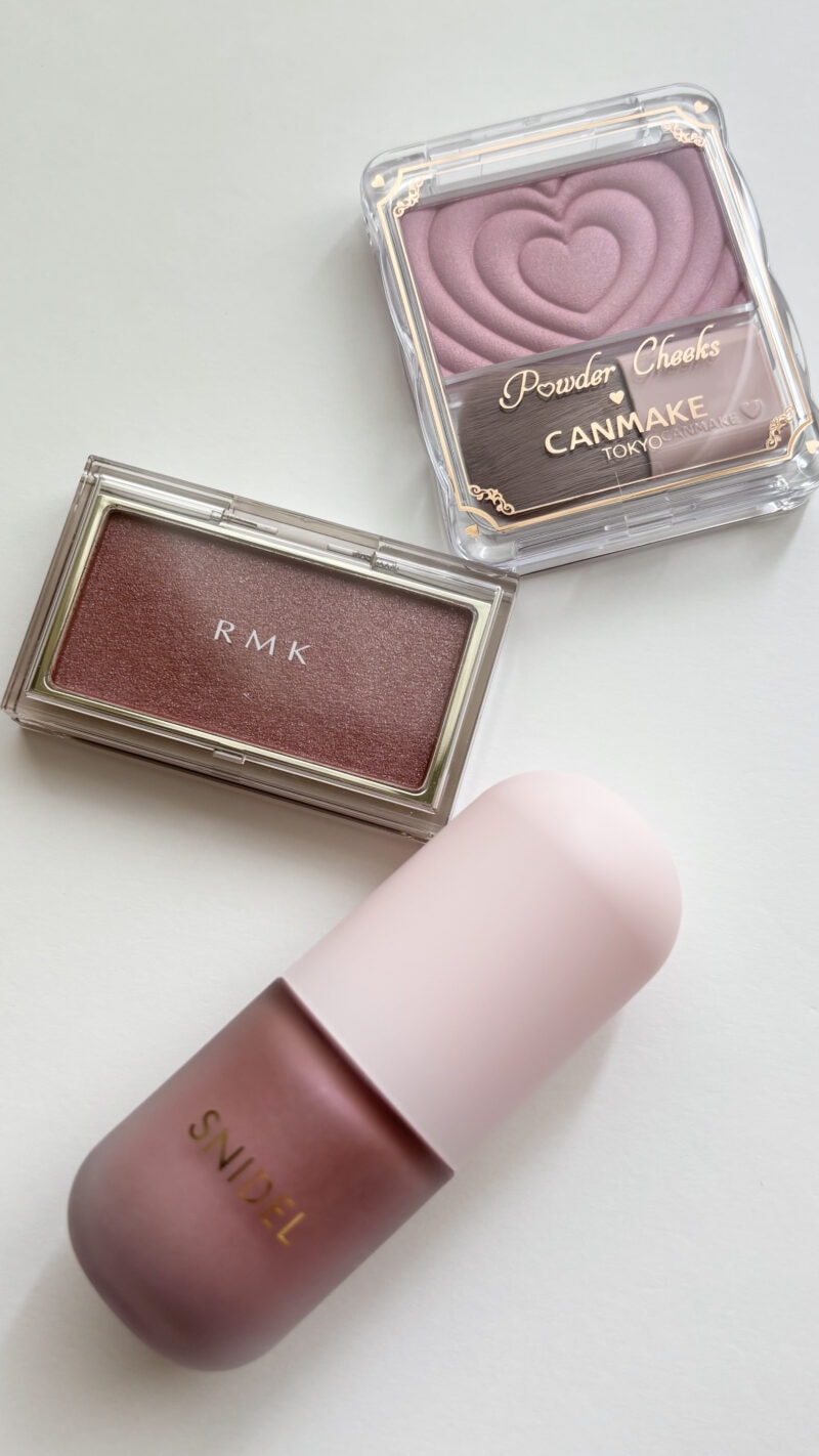 「ブルべ肌の透明感を引き出してくれるチークは、ローズ系やピンク系、プラムやモーブなど青みのあるカラー。ブルベサマーは透け感のある色づきのものを、ブルベウィンターは深みのあるカラーを選ぶと、さらに洗練された印象に仕上がります」