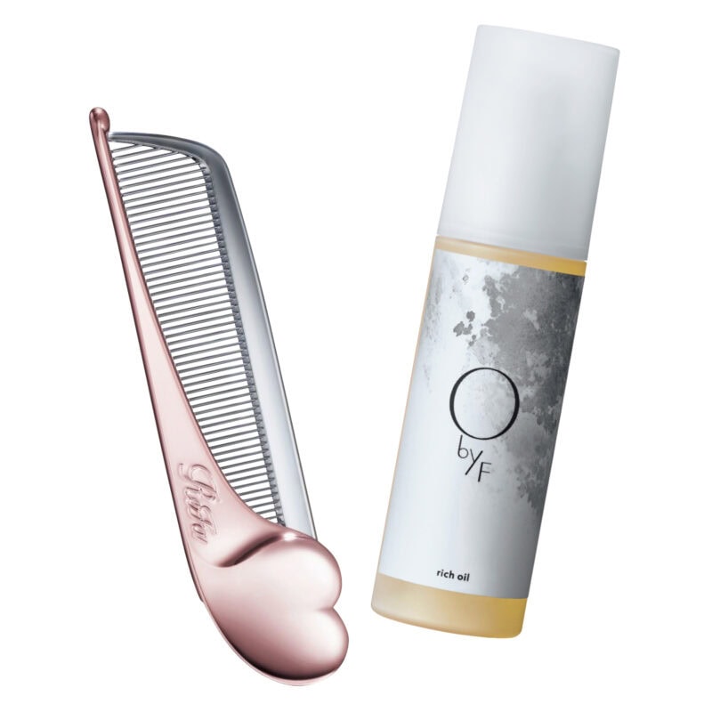 「爽やかな香りに癒やされ、髪に適度なツヤを纏えます。静電気ケア、スタイリング、全身の保湿にも(ヘア&メイク・イワタユイナさん)」。オーバイエッフェ リッチオイル80mL ¥3,410(オーバイエッフェ)