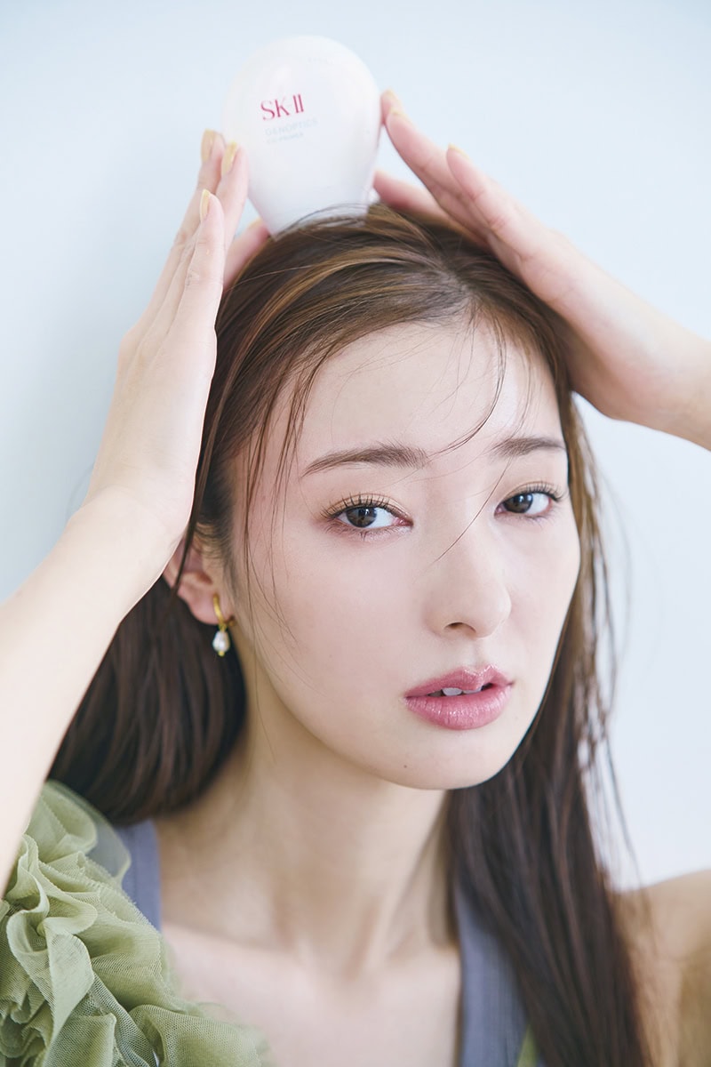 「バリア機能が低下した肌は、外的刺激にダイレクトに晒されやすく、ノーメイクだとゆらぎを悪化させるリスクが。ベースメイクは必要ですが、負担は軽減したいので、トーンアップ下地+フェイスパウダーのミニマムなメイクが快適です。最近の下地は、赤みが出やすい肌を補整しつつ、抗炎症、保湿などのスキンケア効果を兼ね備えた高機能タイプが主流。肌を守り、ゆらぎを落ち着かせる美容液の役割まで果たしてくれます。フェイスパウダーも、肌を花粉やPM2.5の付着から守るヴェールのような存在。仕上げに取り入れて」(Kanakoさん)