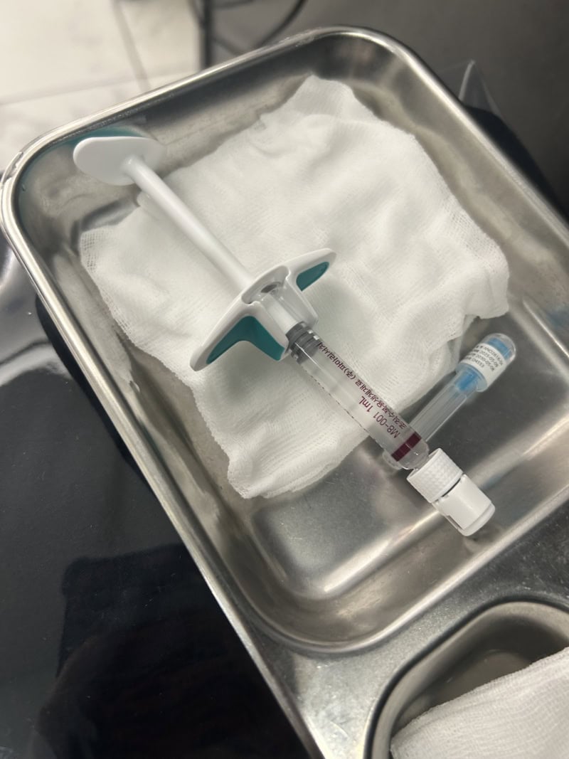 続いて1ccのリジュランへ。目の下を注射でチクチク手打ちされます。事前に貼る麻酔をしていましたが身体がこわばる痛みです涙。が、なんとか耐えました涙。