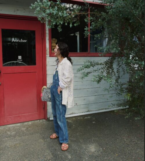 【30代スナップ】ラフに羽織った白シャツで攻略!大人のデニムオールインワンスタイル