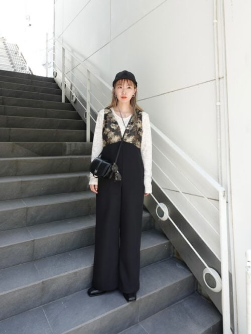 【30代スナップ】レーストップスあわせで、ワンランク上のオールインワンコーデにトライ!