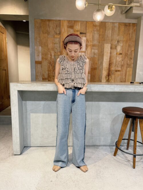 【スナップ】「クラネ」のニットベストで重心アップ! デザインデニムとあわせれば、大人のワンツーコーデの完成!