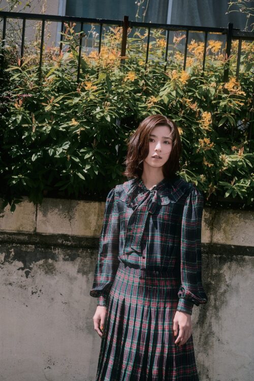 黒島結菜がクールな表情で纏う【サンローラン】のチェック柄