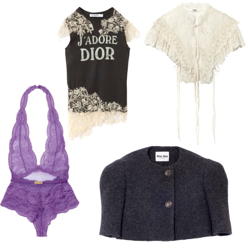 ショート丈のジャケットやレーストップスはパンツ派の私もトライしたくなる~。甘口アイテムは永遠の憧れだね♡