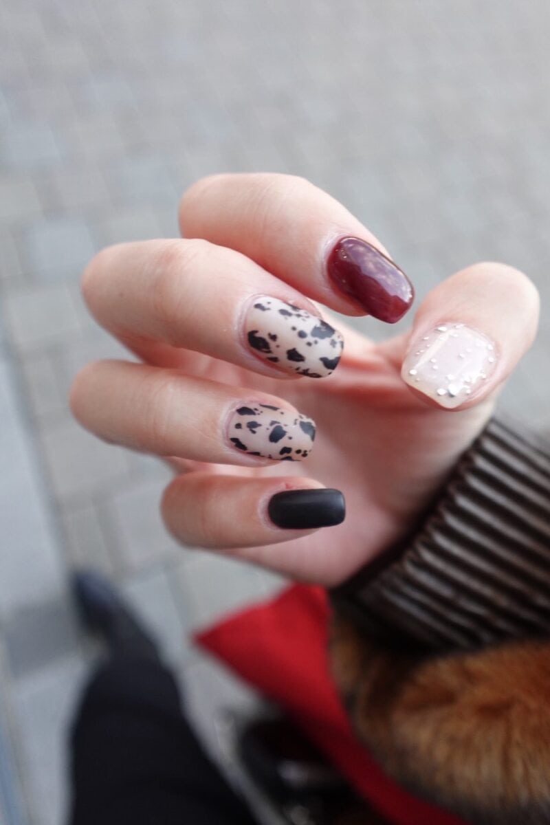 全体に落ち着いたトーンなので、ネイルで彩りを
