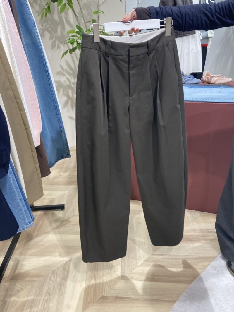 濃いめのブラウンの色味が可愛くて目をひきました。『バレルデニムはカジュアルかな…』という人にもチノならきれいめにはけるのでおすすめです。シアーのカットソーを合わせたり、フリルブラウス+スウェットという甘めカジュアルのコーデに合わせたい!