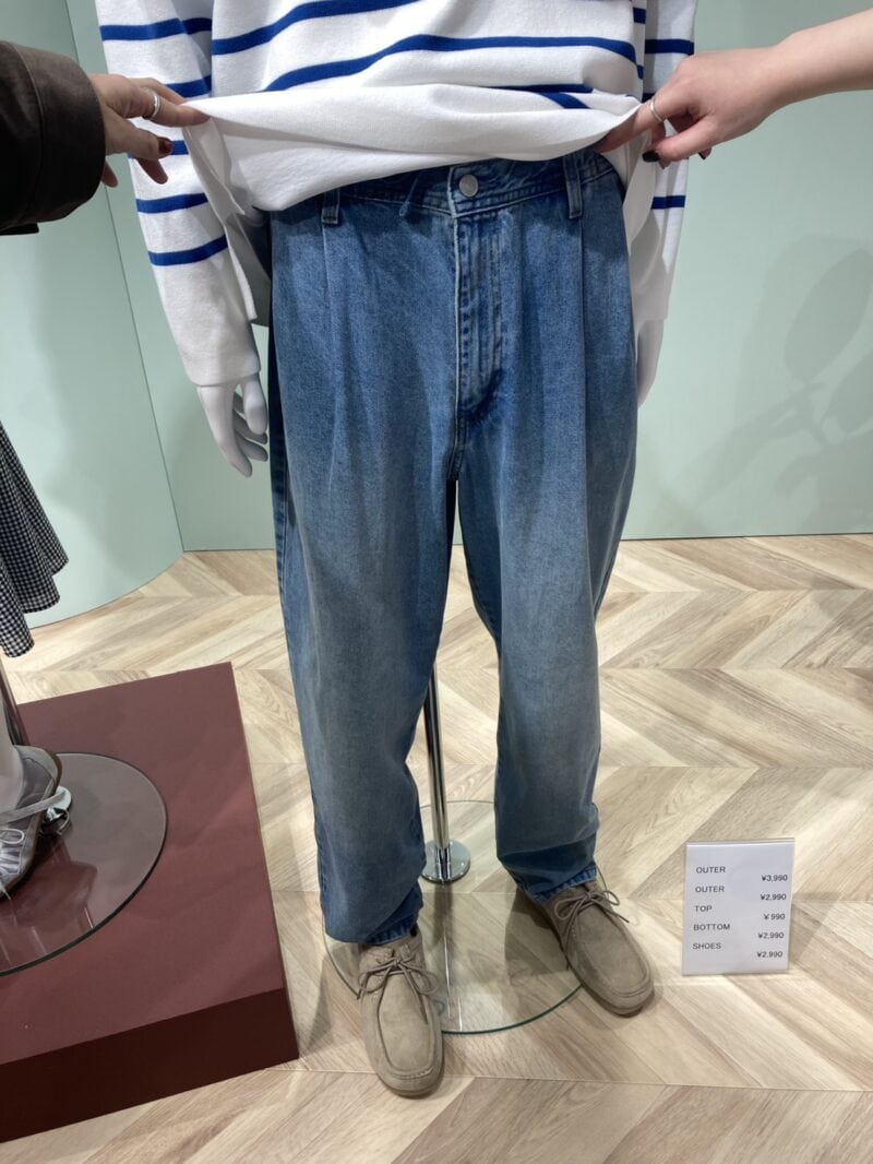 スタイリスト深田さんにんじんのようなややテーパードなシルエットから名づけられた“キャロットデニム”。これはメンズですが女性が着てもよさそう!ゆるっとしているけど太すぎないシルエットに古着っぽい風合いがカジュアルで可愛いし、でもタックが入っているのできれいめにはけるはず。