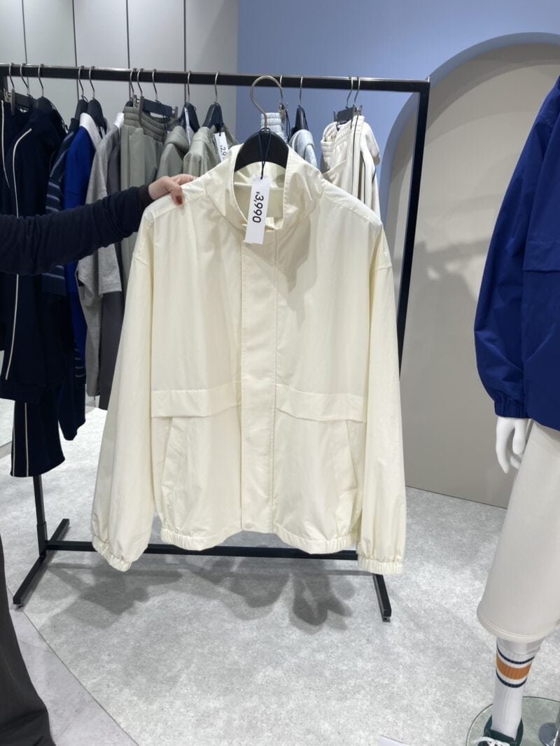 スタイリスト深田さん防風のアウターは春先の肌寒い時など羽織を持ち歩きたい時に便利。イチオシのカラーは白。コスパプライスなので、思い切ってチャレンジしやすいです。スタンドカラーのデザインも洗練された印象になります。中にシャツを着たり、スラックスやサテンスカートなどきれいめなボトムを合わせつつ、小物はスニーカー+キャップなどを合わせて着るのがおすすめです。