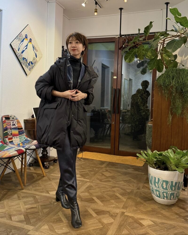 【30代スナップ】ダウンコートとデニムベストをレイヤード!美シルエットな真冬コーデの完成