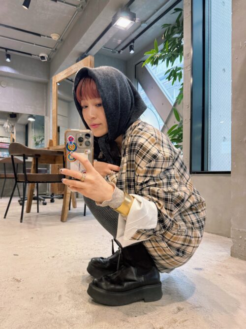 絶大な存在感のチェック柄ジャケットをメインに、スタイリング。アイテム数はしぼってミニマルに着こなすことで、大人っぽく仕上がります。ニットスカーフをヘッドアクセ風に使うことで、視線もアップ。バングルやリングでドレッシーさも上昇します。