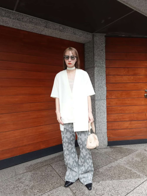 【30代スナップ】ラメ入りパンツで華やかに! 白ジャケットで作る軽やかな春スタイル