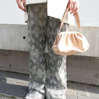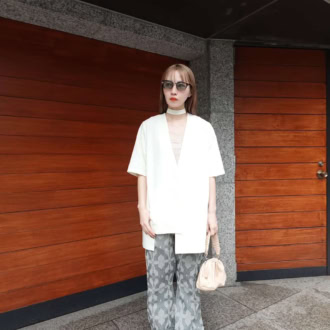 【30代スナップ】ラメ入りパンツで華やかに! 白ジャケットで作る軽やかな春スタイル