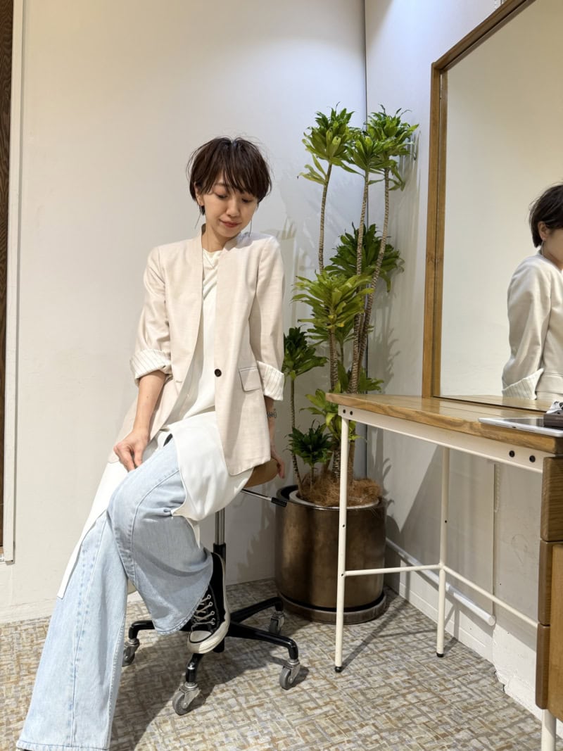 【30代スナップ】白アイテムのレイヤードで上品に。デニムでさわやかにまとめた大人カジュアル