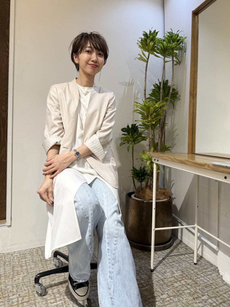 【30代スナップ】白アイテムのレイヤードで上品に。デニムでさわやかにまとめた大人カジュアル