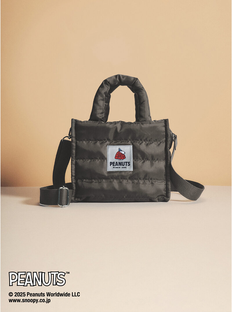 11月号の付録はスヌーピーのデザインの2WAYキルティングバッグ。チャコールグレーが大人っぽいキルティング素材のバッグは、取り外し可能なショルダーストラップ付きで、斜め掛けにも手持ちにもできる優れもの。中央にはもこもこのダウンを着たスヌーピーの刺繍タグがアクセントに♡。ちょっとしたお出かけに便利なバッグは11月号だけの特別付録です。