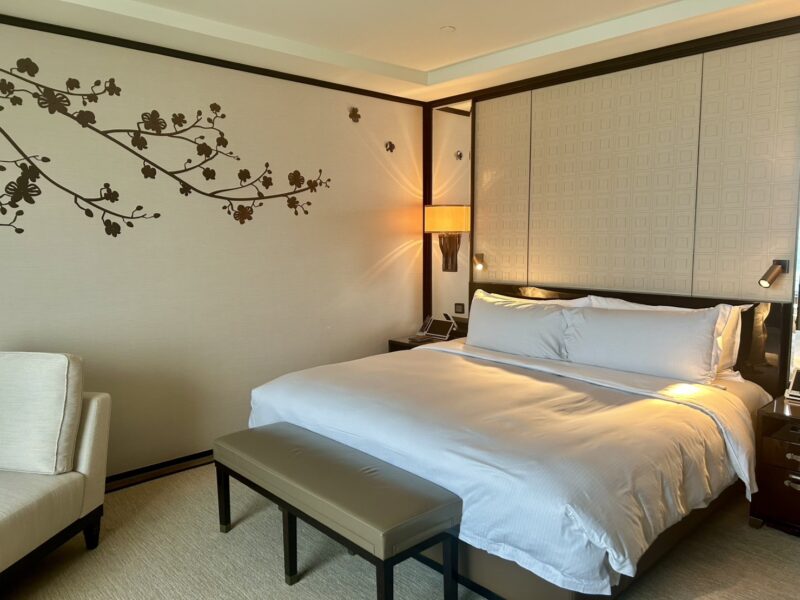 今回宿泊したお部屋は、「グランドデラックスハーバービュールーム(キング)」です。お部屋に入るとまず目を奪われるのは、窓いっぱいに広がる絶景。目の前にはビクトリア・ハーバーが一望でき、壮大な景色を心ゆくまで満喫することができました。