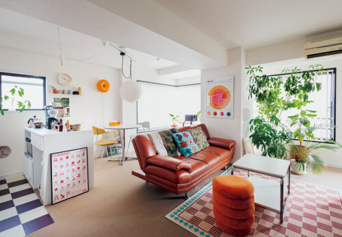 海外クリエイターのインテリアを参考に、部屋の中央に主役のソファを設置。そして、このソファを中心に「部屋を細かく区切るイメージで」家具の配置を決めていったんだそう。テイストMIXも、こなれたムードを醸すカギ。