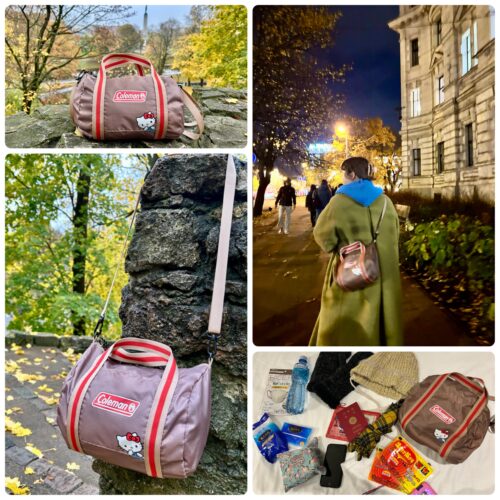 今回訪れたのは10℃以下の寒い国。街歩きの際に帽子や手袋、カイロなどの寒さ対策グッズはもちろん、突然の雨に備えた折り畳み傘も手放せません。さらにパスポート、貴重品、水、ウェットティッシュなど海外旅行ならではの“絶対に持ちたい大荷物”も。これらすべてがこのポシェット一つに収まり、本当に助けられました。街歩きだけでなく、機内持ち込みバッグとしても活躍しました。