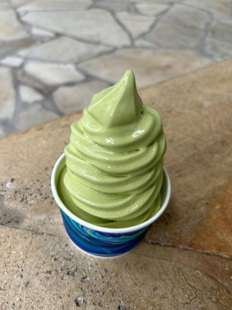 ローソンの抹茶プレミアムソフトクリーム($7.19)が高級感のあるリッチな味わいで驚き!バニラソフトクリームに抹茶の粉末をミックスしているとのことですが、「老舗甘味処の抹茶ソフトクリームです」と言われたら信じてしまいそうなレベル! カップで隠れているけれど量が多いので2人でシェアしてもよさそう。夜遅くまでオープンしているので、食後のデザートとして食べるのもあり。