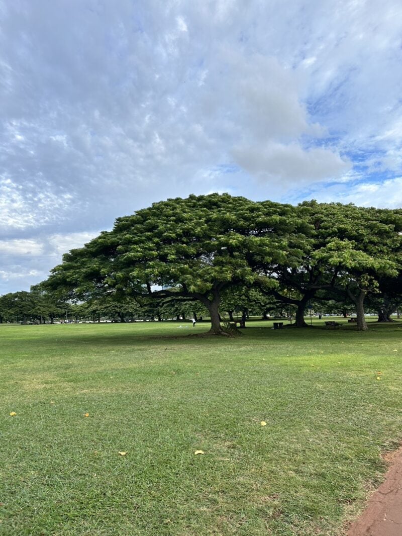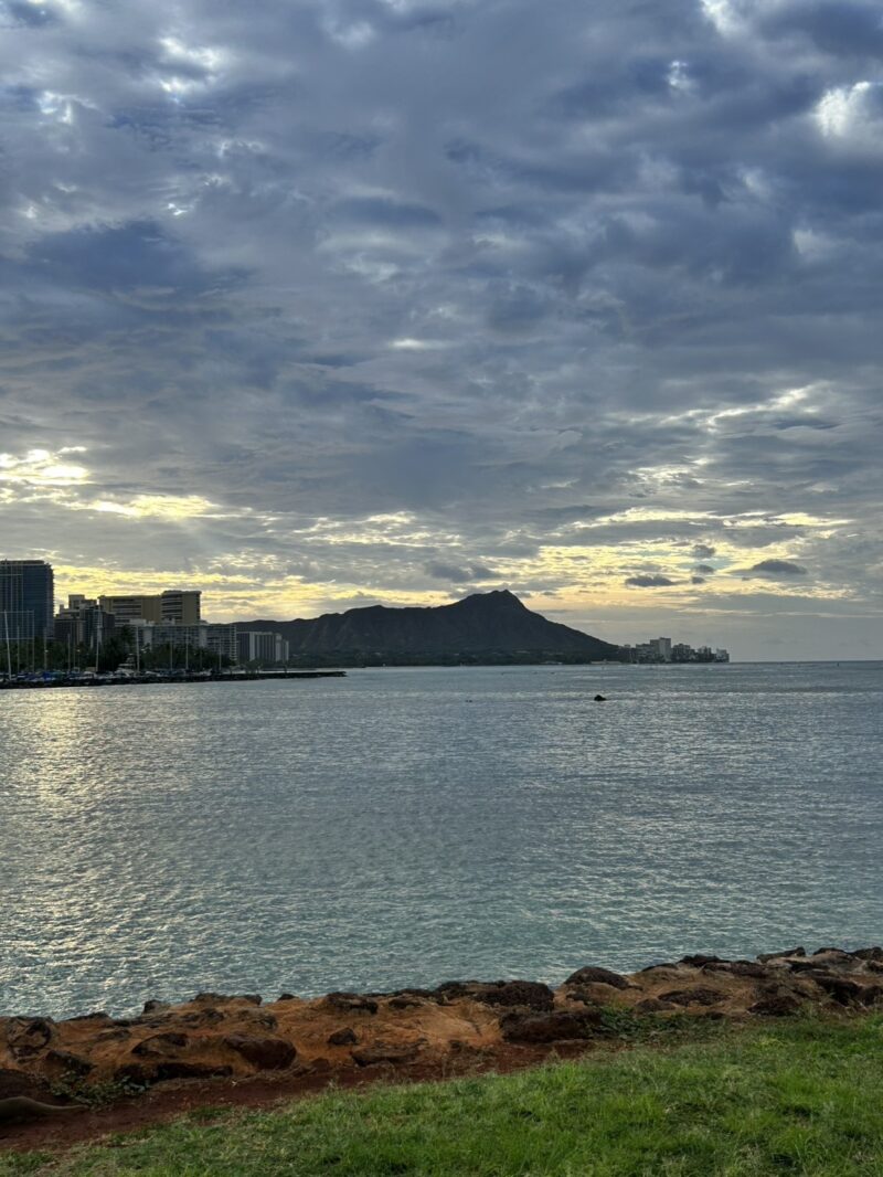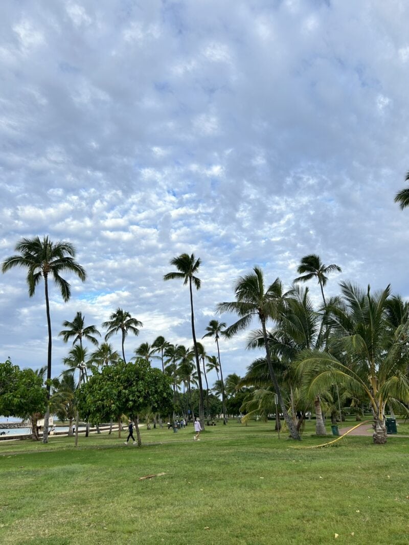 プリンスからアラモアナ公園の入り口まで歩いて6分ほど。海が見渡せる気持ちいい公園ですが、空気が澄んだ早朝はさらに心地いい絶好のお散歩コース。