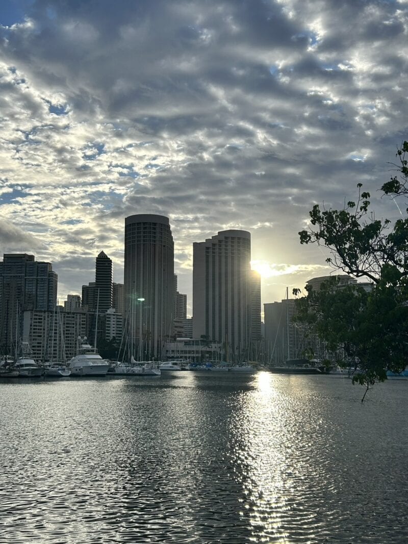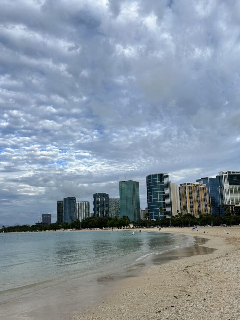 海を挟んで見えるプリンスのツインタワーやダイヤモンドヘッド。