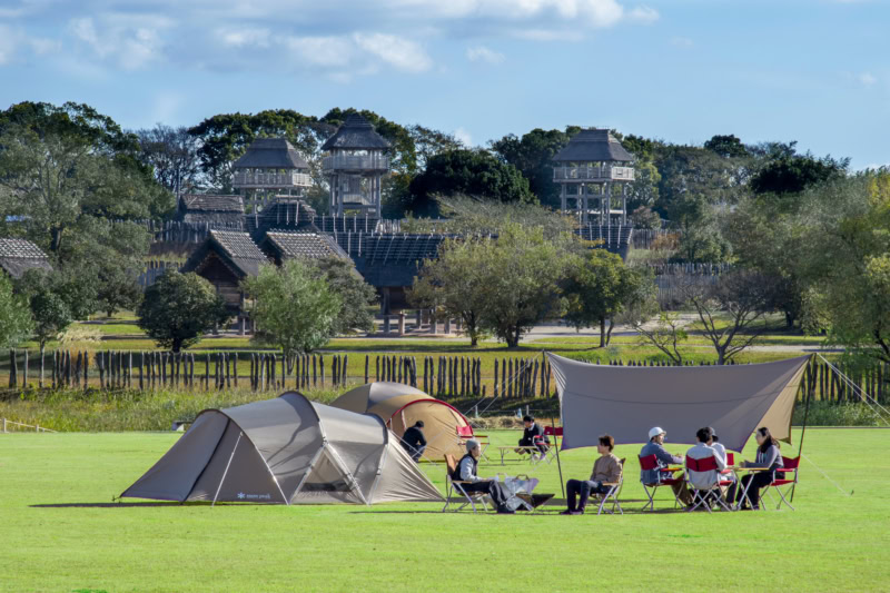 佐賀県東部の吉野ヶ里町と神埼市にまたがる自然豊かな地にある吉野ヶ里歴史公園は、「弥生人の声が聞こえる」をテーマに、弥生時代の暮らしや文化を体感できる場として、国内外から年間約70万人が訪れる人気スポット。この公園内に日本初となる歴史公園内の宿泊施設を含む体験型複合施設「スノーピーク グラウンズ吉野ヶ里」が2026年3月に開業します。