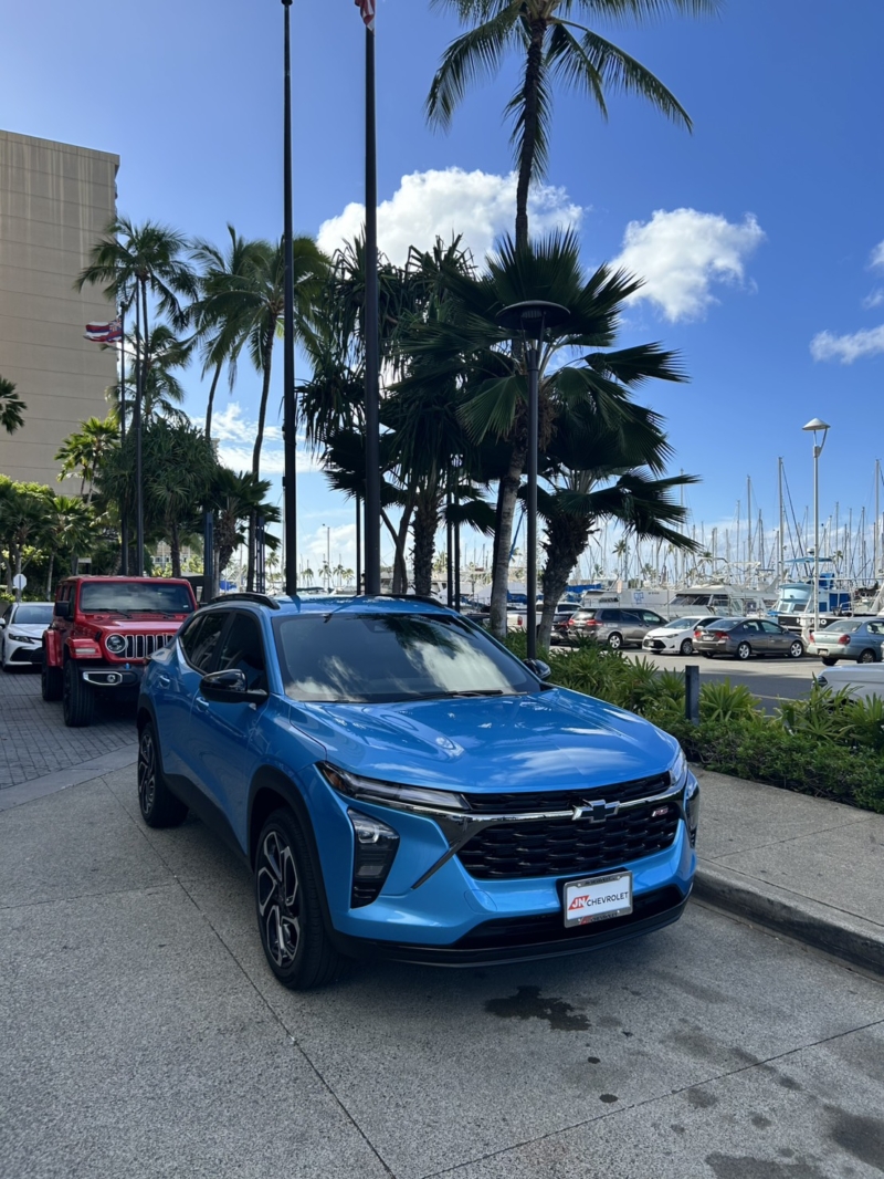 SUVらしいスポーティなデザインがかっこいいシボレーのトラックスが届きまた! ハワイの海や空に似合うメタリックなマリーンブルーも素敵! アガる!