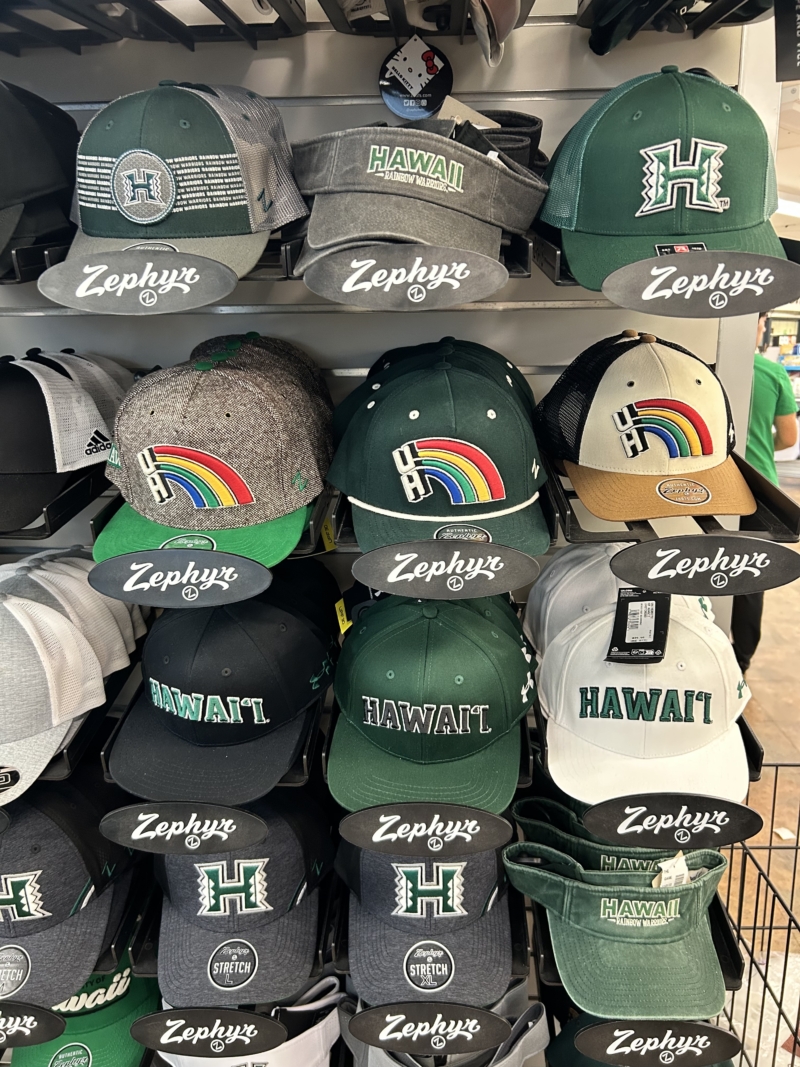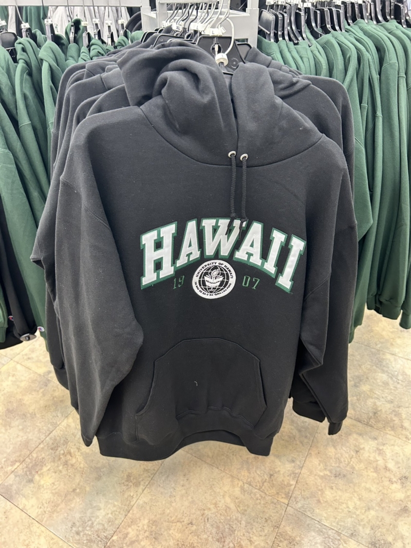 ハワイ大学のブックストアにスウェットやキャップ、マウンテンパーカなどが大量にあり、テンション爆上がり! 無事スウェット2枚を購入。