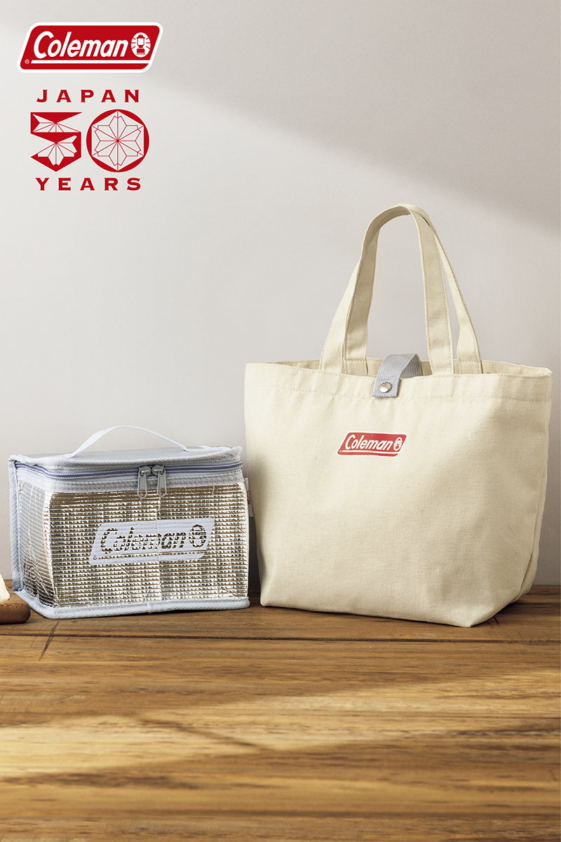 5月号の付録は、日本上陸50周年の「コールマン」とのスペシャルコラボ! 「トートバッグ」と「マチ広ボックス型アルミバッグ」の豪華2点セットです。セット使いはもちろん、単品でも大活躍。トートはちょっとしたお出かけに最適なサイズ感、アルミバッグは広いマチ付きで、ドリンクやお弁当の持ち運びに便利で、レジャーにもぴったりです。