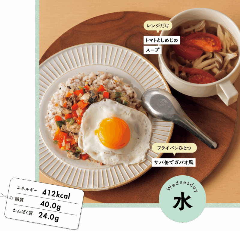 【やせ献立レシピ・水曜日】「サバ缶でガパオ風」彩り豊かなヘルシーレシピ
