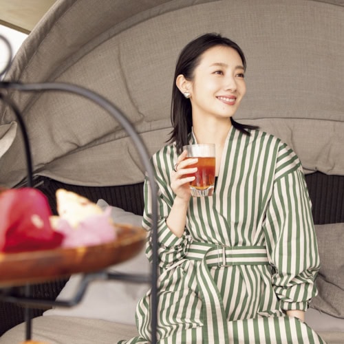 時間に応じて軽食の内容が変わるラウンジ「CHILLAX」。15:00~18:00はマフィンやスコーンなど焼き菓子が登場。スタンドに並べれば優雅なアフタヌーンティースタイルに。フローティングトレイにのせればリゾートムードたっぷりな、水辺で味わう贅沢なティータイムをすごせる。