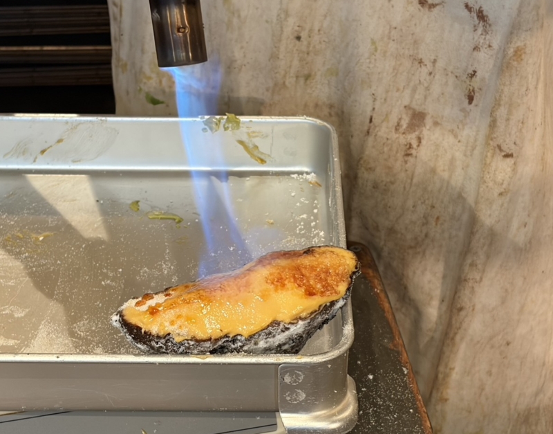 バーナーでグラニュー糖をまぶした表面をあぶります