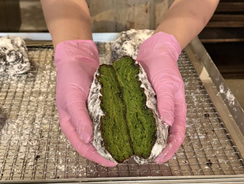 ふわっと軽い口当たりのドーナツ生地にも抹茶が練り込まれています