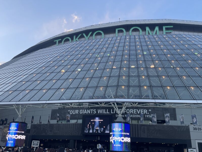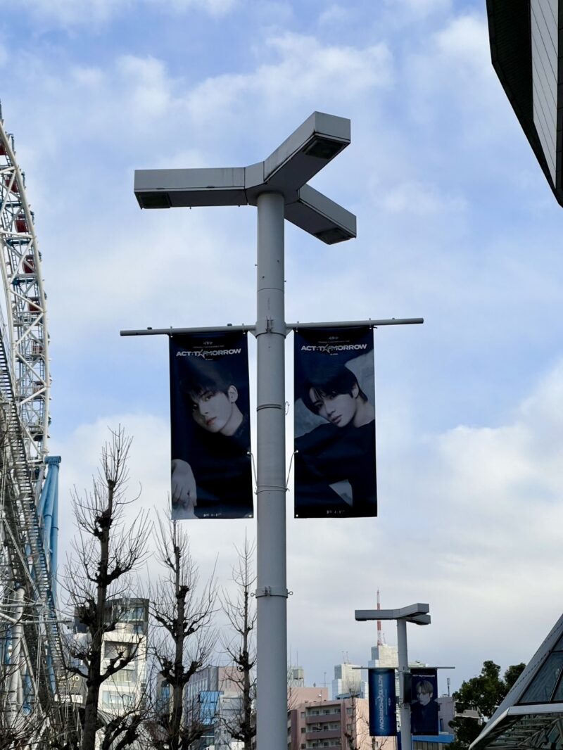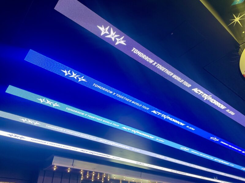 公演に合わせて東京ドームシティでは、コラボレーションイベントも開催。東京ドーム周辺のLEDスクリーンでは、TOMORROW X TOGETHERのスペシャルビデオが上映されたり、5人の巨大なビジュアルバナーや広告がたくさん。ライブの前から気分が高まります。