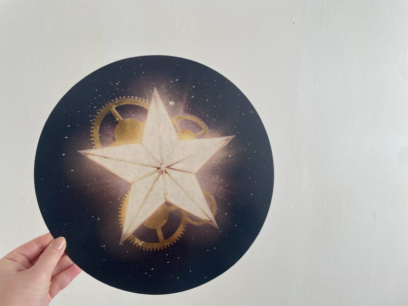 暗闇で星が光るスローガン。後ろには、メンバーからの直筆メッセージがランダムでプリントされています。